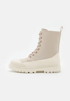 Calvin Klein Jeans Chunky Combat Laceup Zip – Enkellaarsjes Met Plateauzool – Eggshell