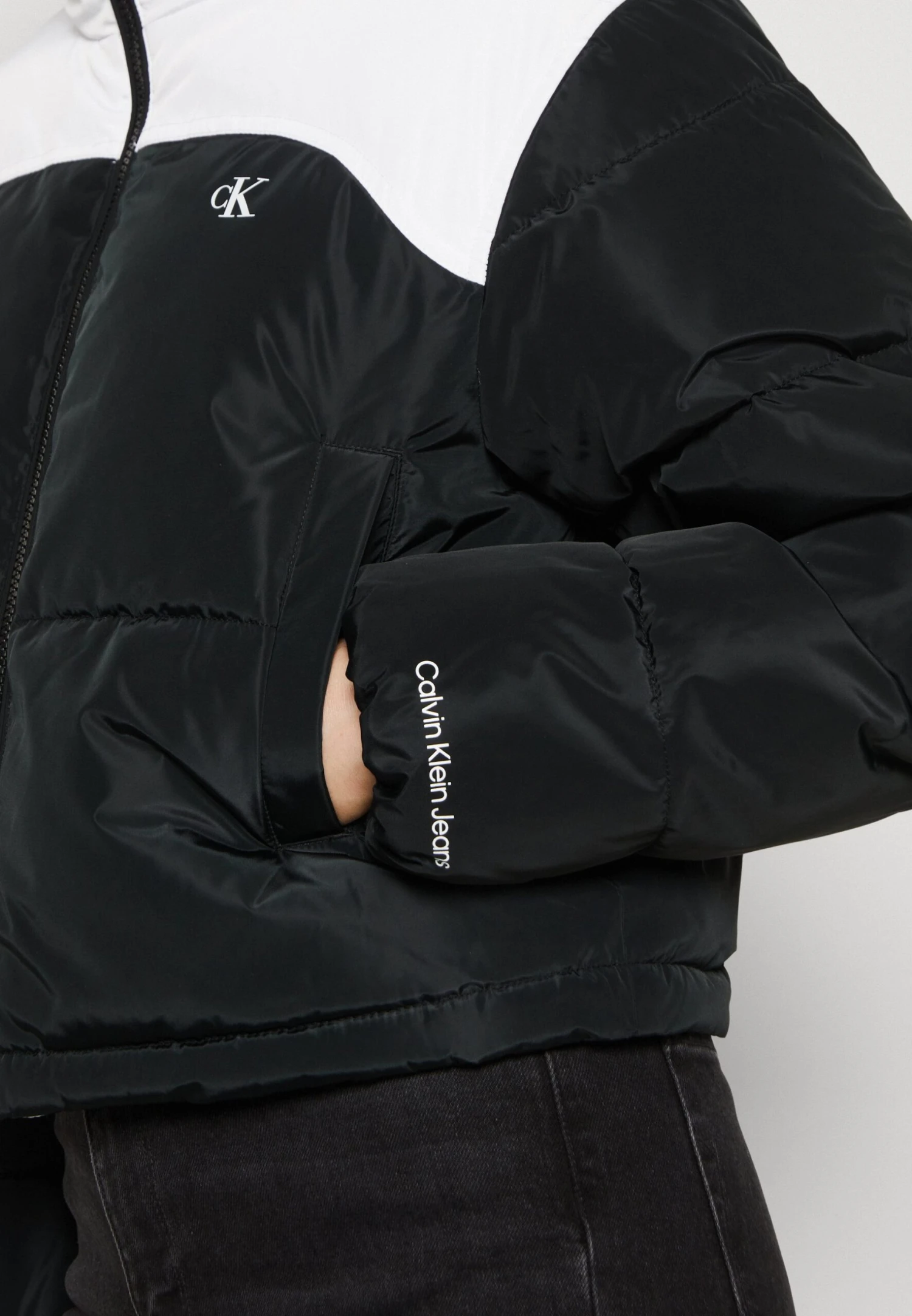 Calvin Klein Jeans Cropped Puffer – Winterjas – Black/ Bright White
