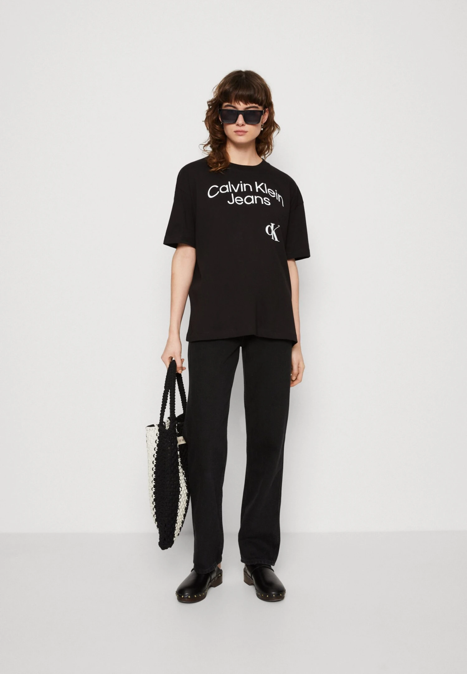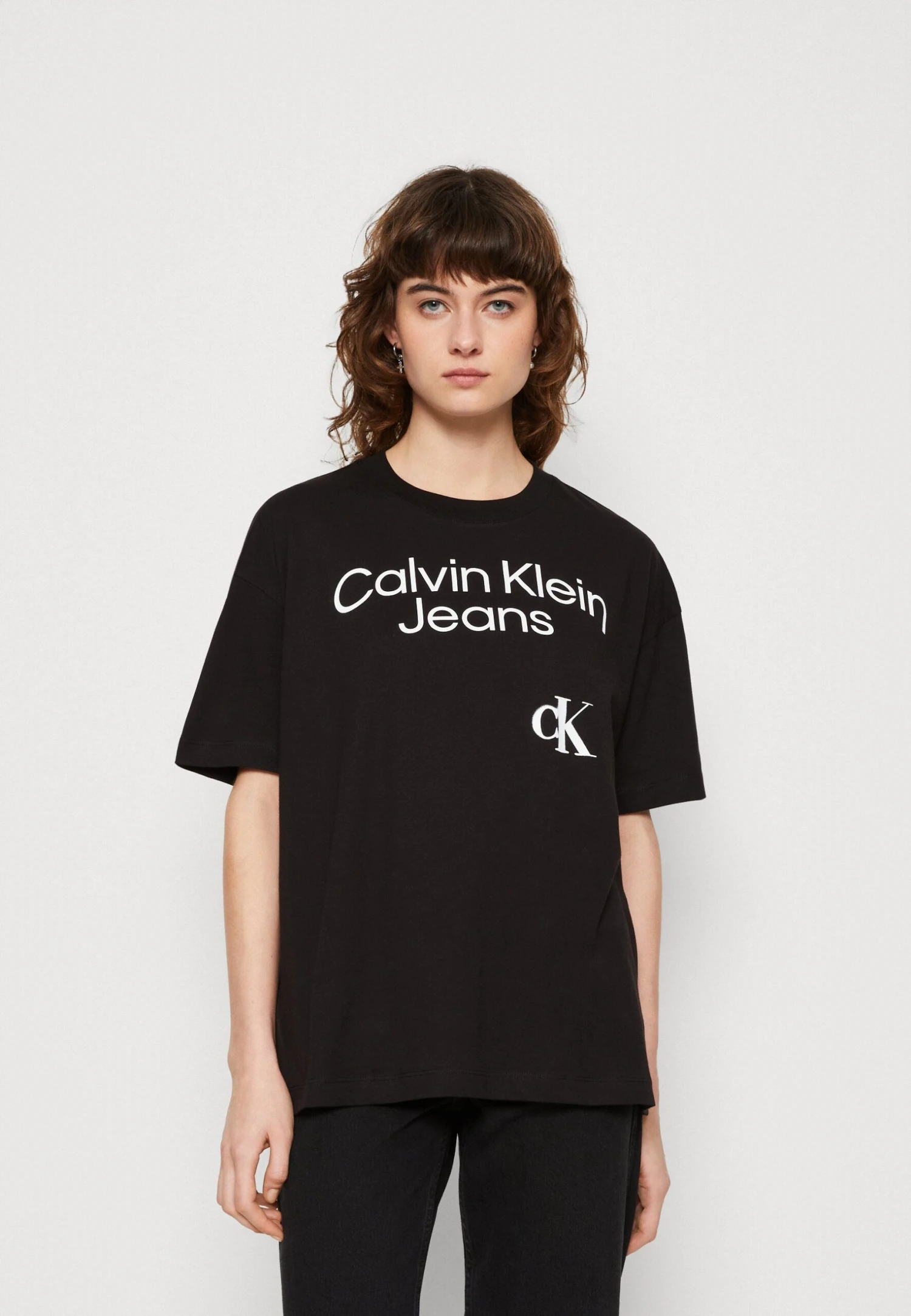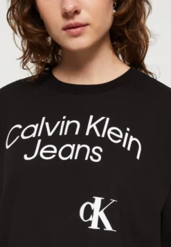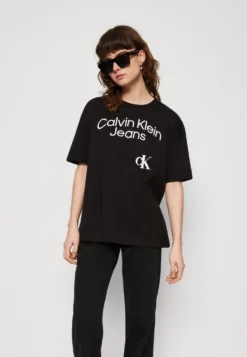 Calvin Klein Jeans Curved Stacked Logo- T-Shirt Print – Black