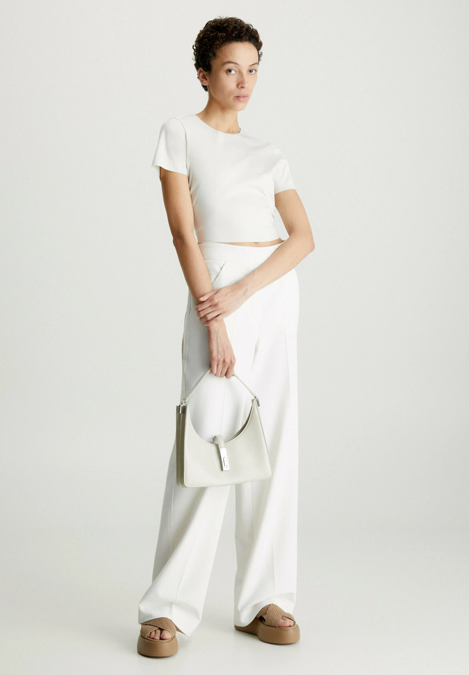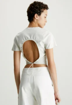 Calvin Klein Slim Scuba Open Back – T-Shirt Print – Chalk