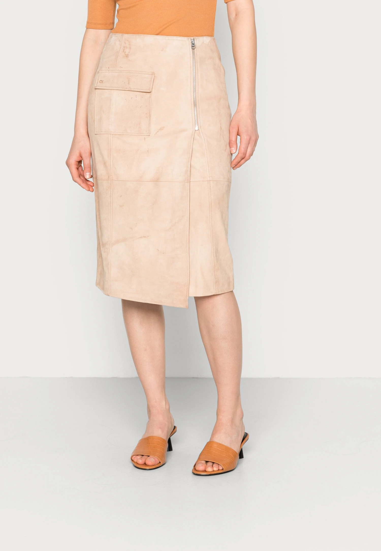Calvin Klein Suede Midi Skirt – Kokerrok – Moccasin